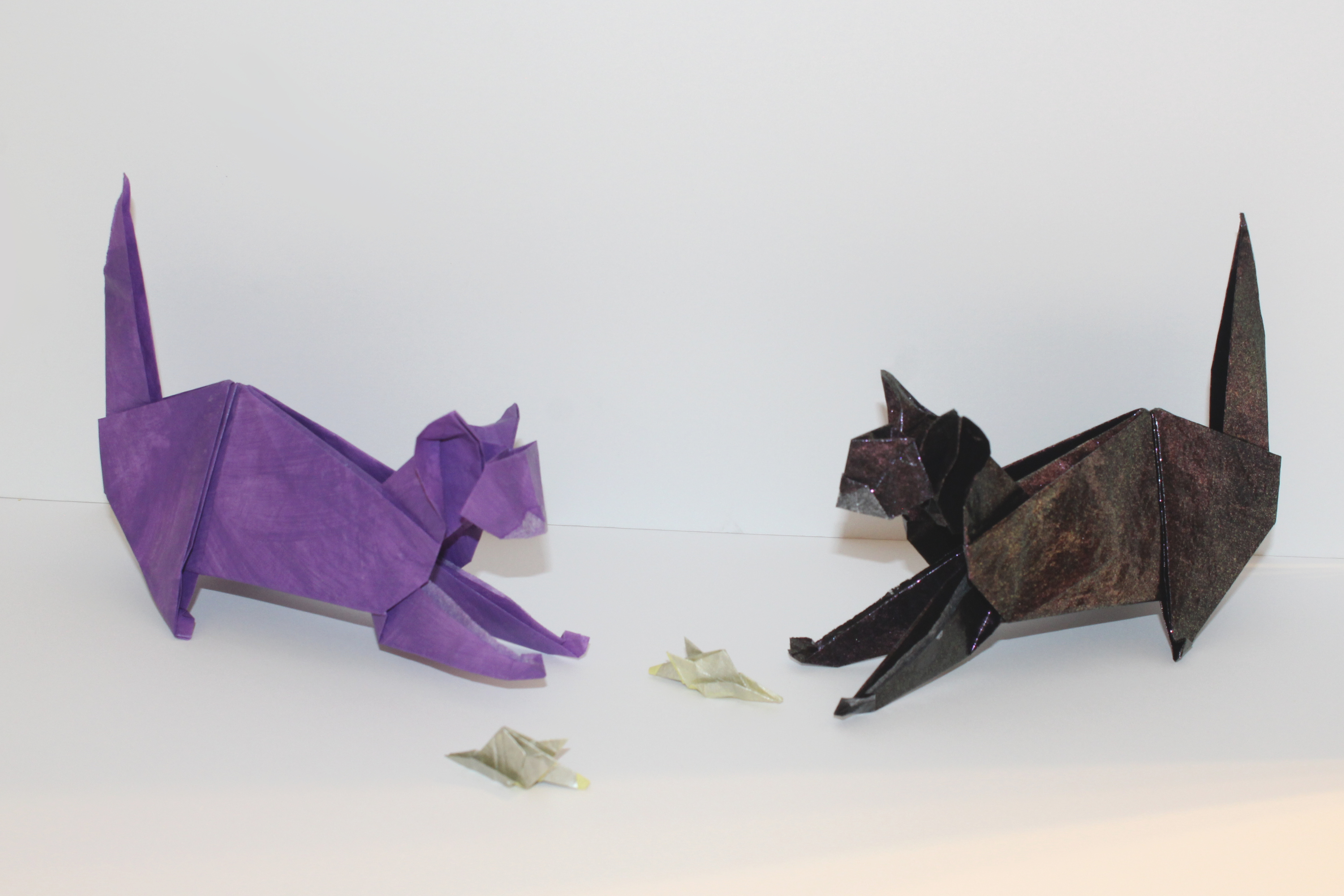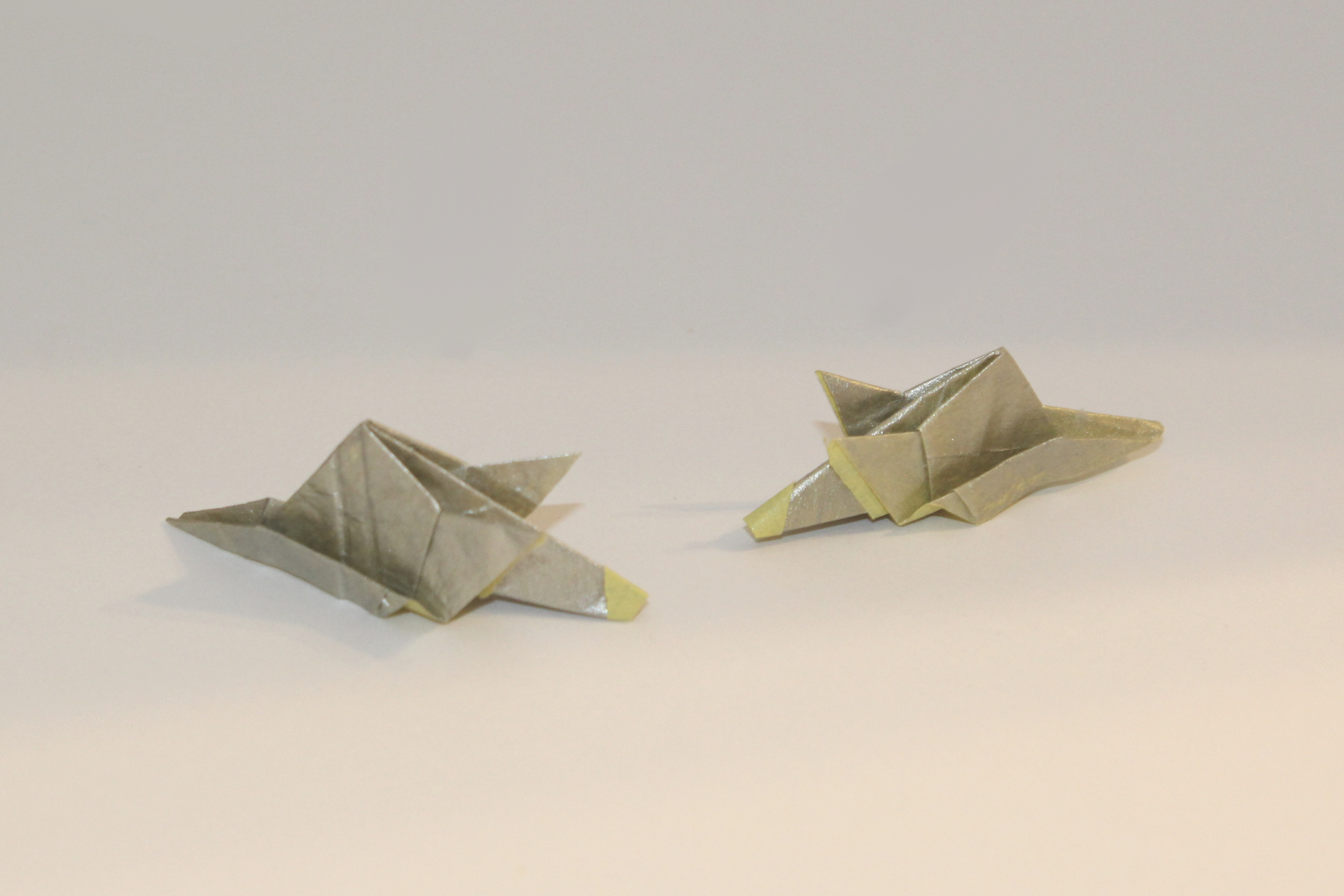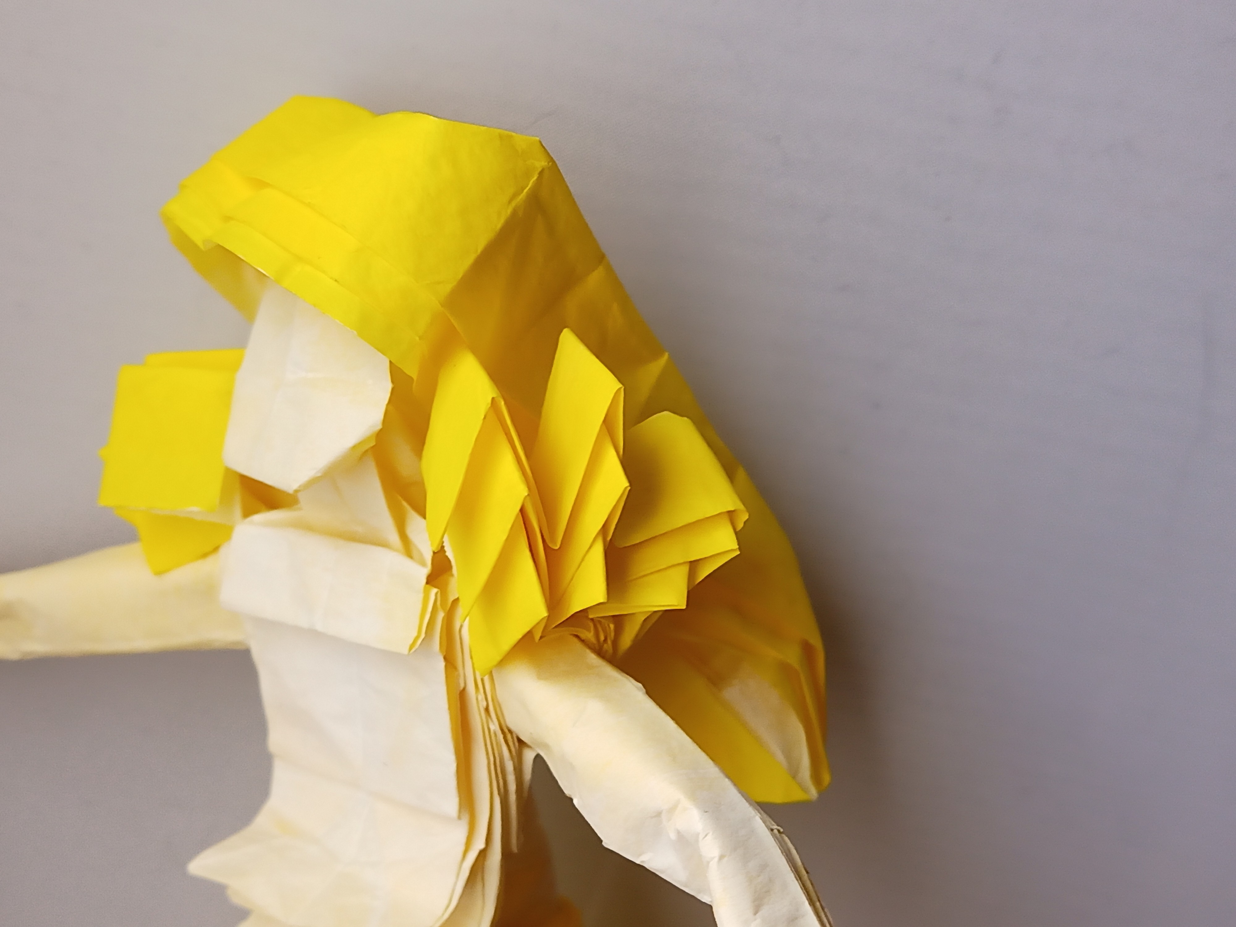Anyway, if you’re doing “traditional” origami, you only have one square and thereby two possible colours (the front side’s and back side’s colours). I’m not exactly attached to traditional style though. For more colours, you can paint the model or use more sheets of paper.