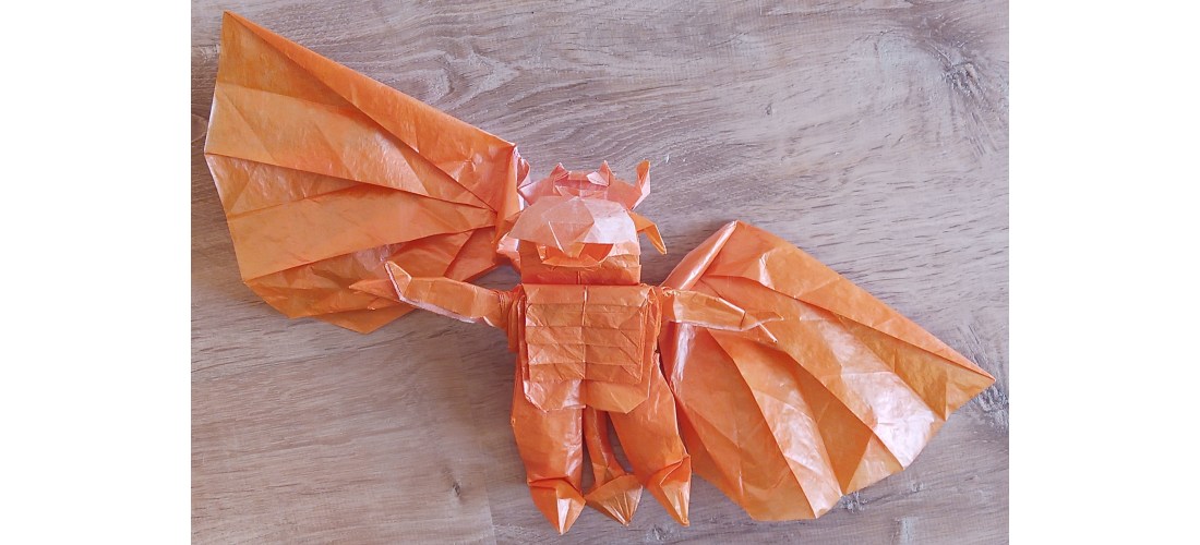 • On his crease pattern, the head is the top right corner, and the tail is at the bottom left.