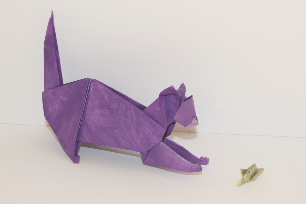 I’ve gotten a few people ask me for help on Kakami ‘s Leafy Sea Dragon (CPC 69, OTM 125). I didn’t really remember it, so I folded it again and have some tips here. Although, I think my fold is a little off. Also, this one is purple for Dragalge, a pokemon I like that’s being reintroduced into the game with an expansion! Not that I’m going to get the expansion at that price before I find out if it’s worth it…