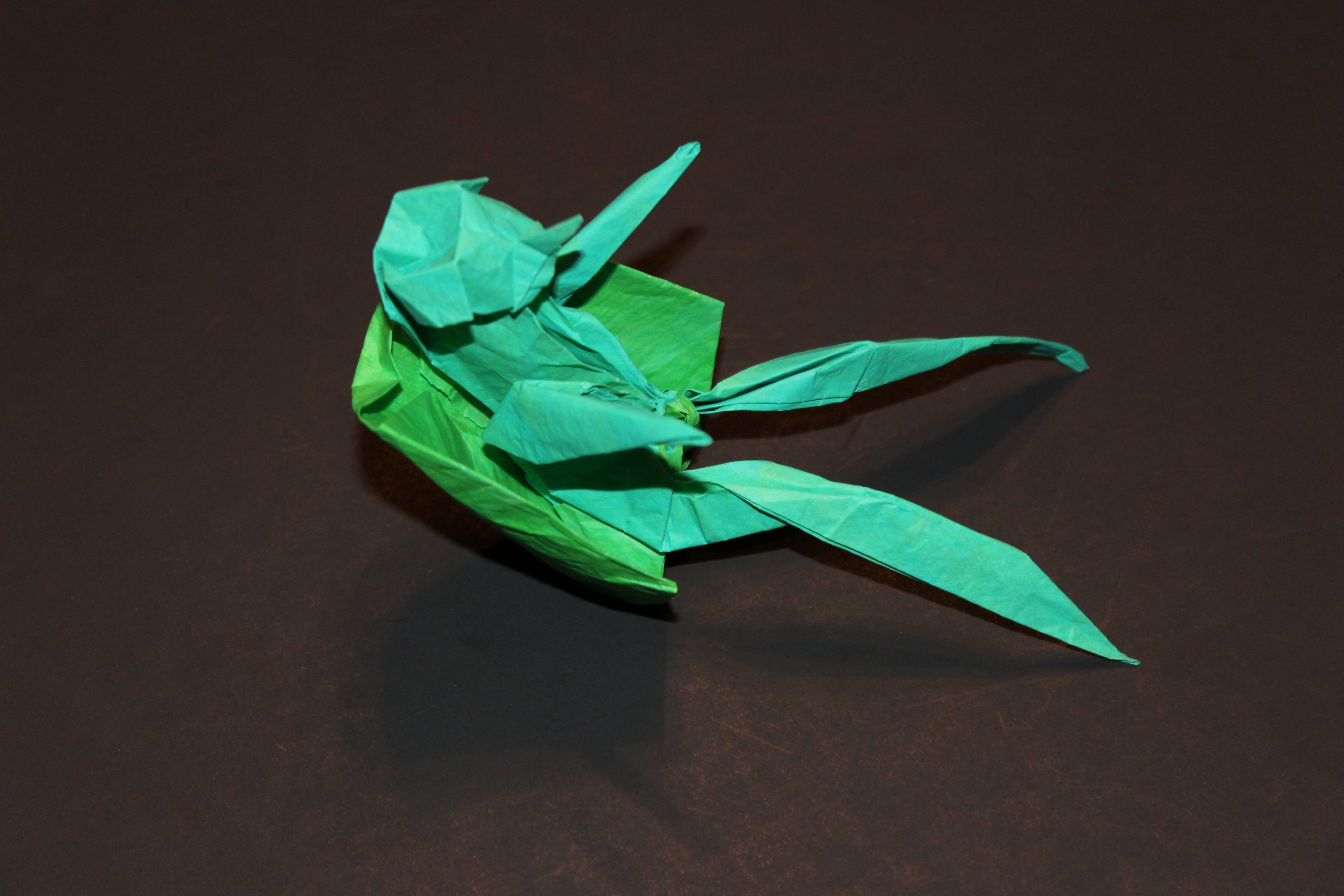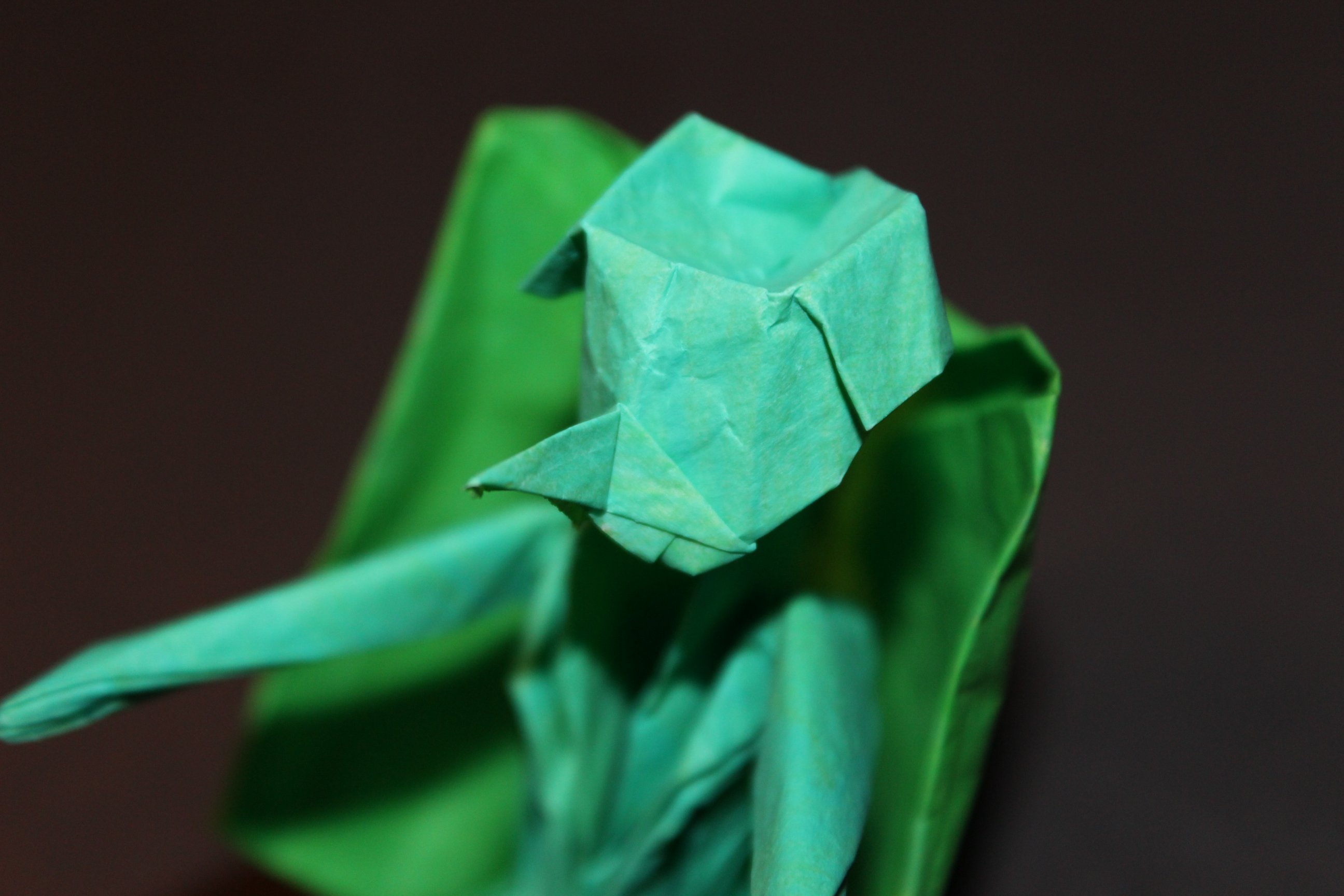 My origami kappa is pretty simple, but I’m quite proud of the color change. Paper that is different colors on each side will make the kappa one color and its shell the other color.