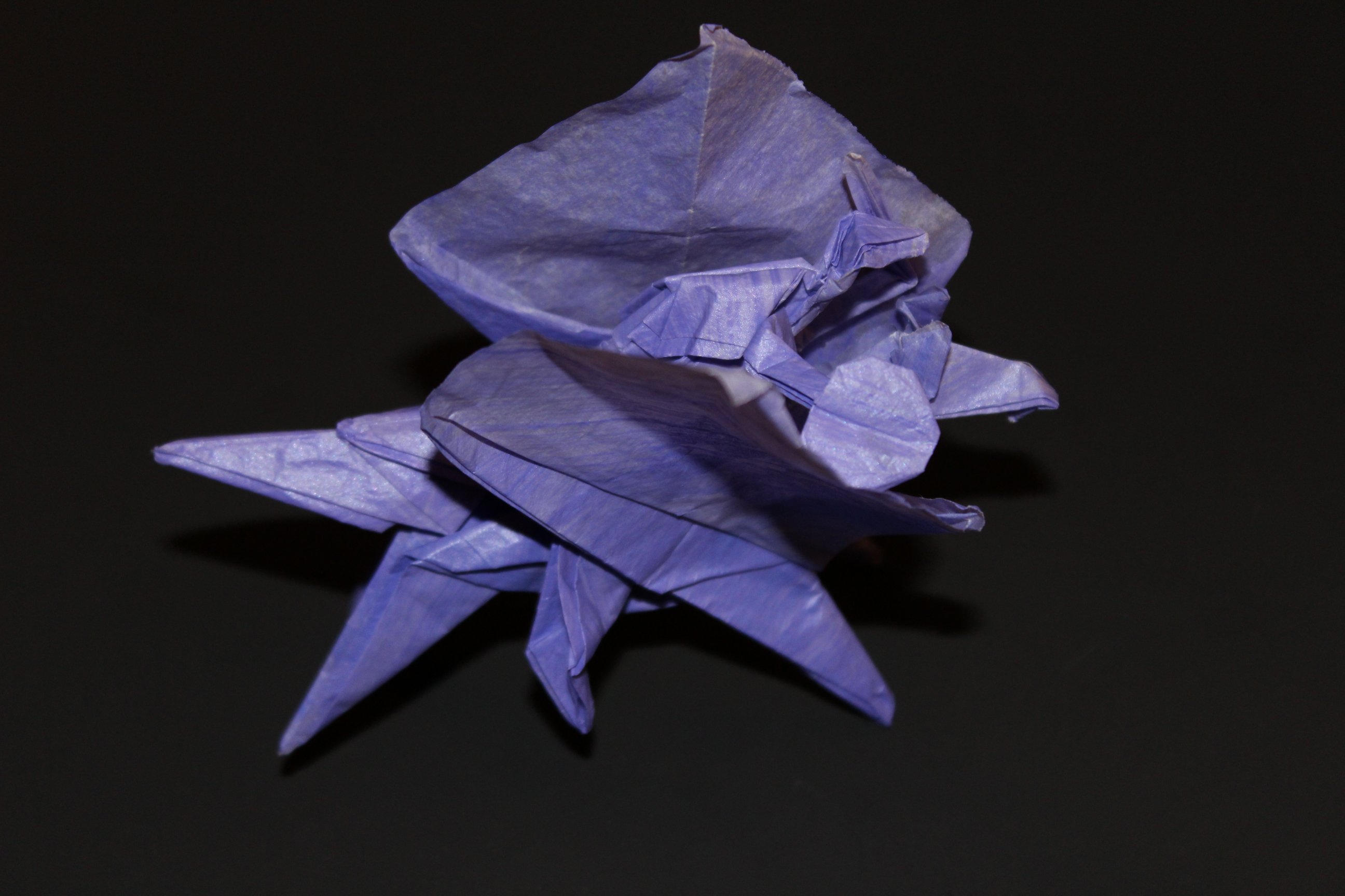 The fourth crease pattern was developed by Noboru Miyajima. It’s a neat model that uses one square of paper for two characters, a Knight on a Pegasus. I guess the knight would be Perseus, as Pegasus is created by Medusa’s blood (one way or another) when Perseus beheads her. I never thought of Perseus wearing a lot of armour (he gets his shield, hat, and shoes on the way, so I always think he travels light, but maybe he traded them in). Some paintings (such as this time-lapse painting) do have him armoured up. Sculptors tend to disagree. But “Naked Dude on a Pegasus” would probably require different points of articulation.