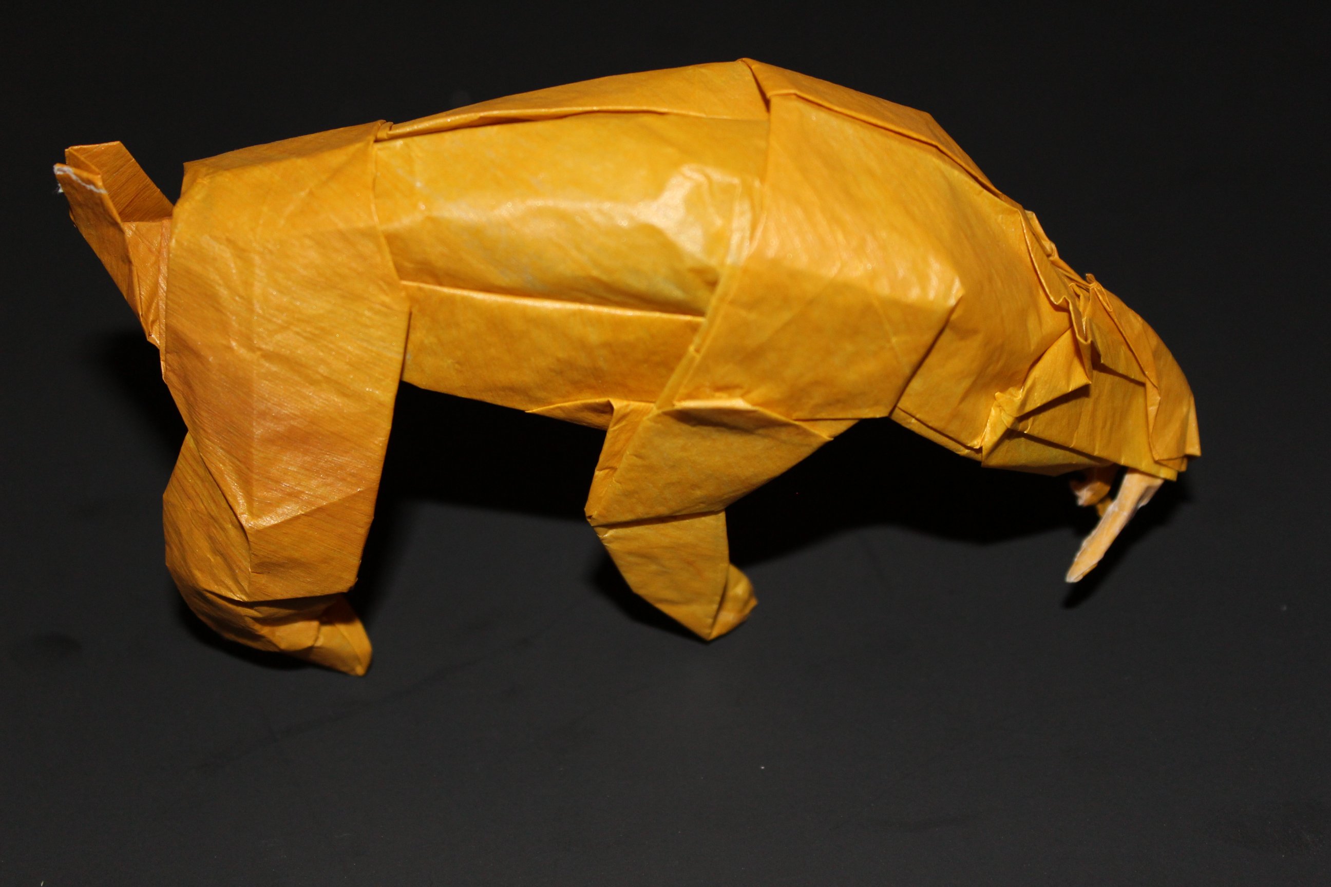 I had made this Cerberus model before when the crease pattern came out in Tanteidan Magazine. Either I got a little better or there are some subtle locks holding this in shape, because the previous one kept flattening out (like cartoon road kill). By the book, Cerberus is properly 3D and looks like the middle head is trying to stay professional, while both side heads want to party/get belly rubs.