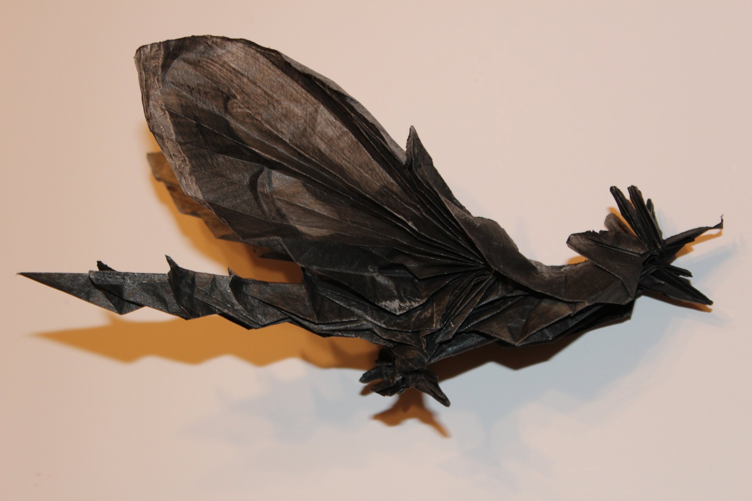 The Dragon by Seiji Nishikawa is Tanteidan’s Crease Pattern Challenge #14. You might be thinking, “Wasn’t that challenge #6?” #6 was “Ryuu” (龍), an eastern style dragon with the Japanese word for dragon, and this one is “Dragon” (doragon/ドラゴン) , to indicate a more western style. He is also more of a cartoon dragon, because he stands upright, like Charizards, Great Dragons, or Ice Dragons.