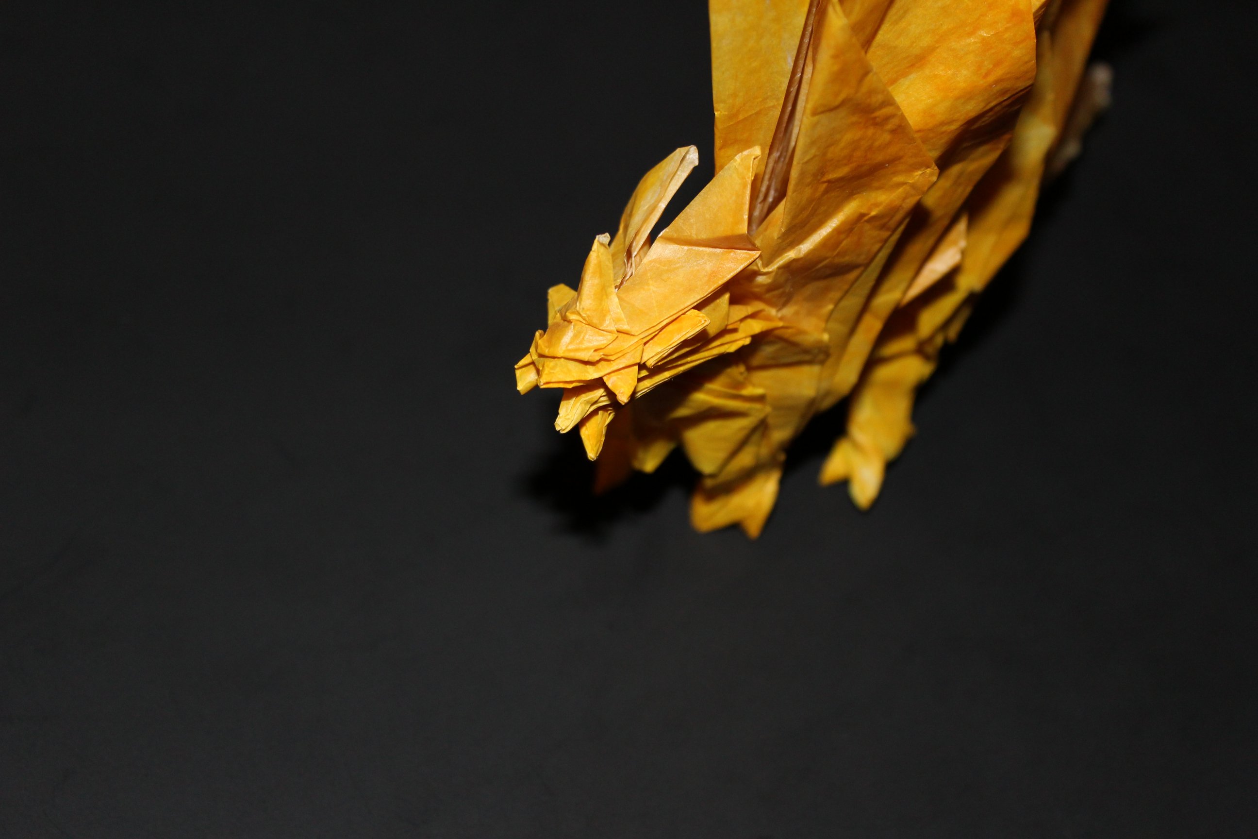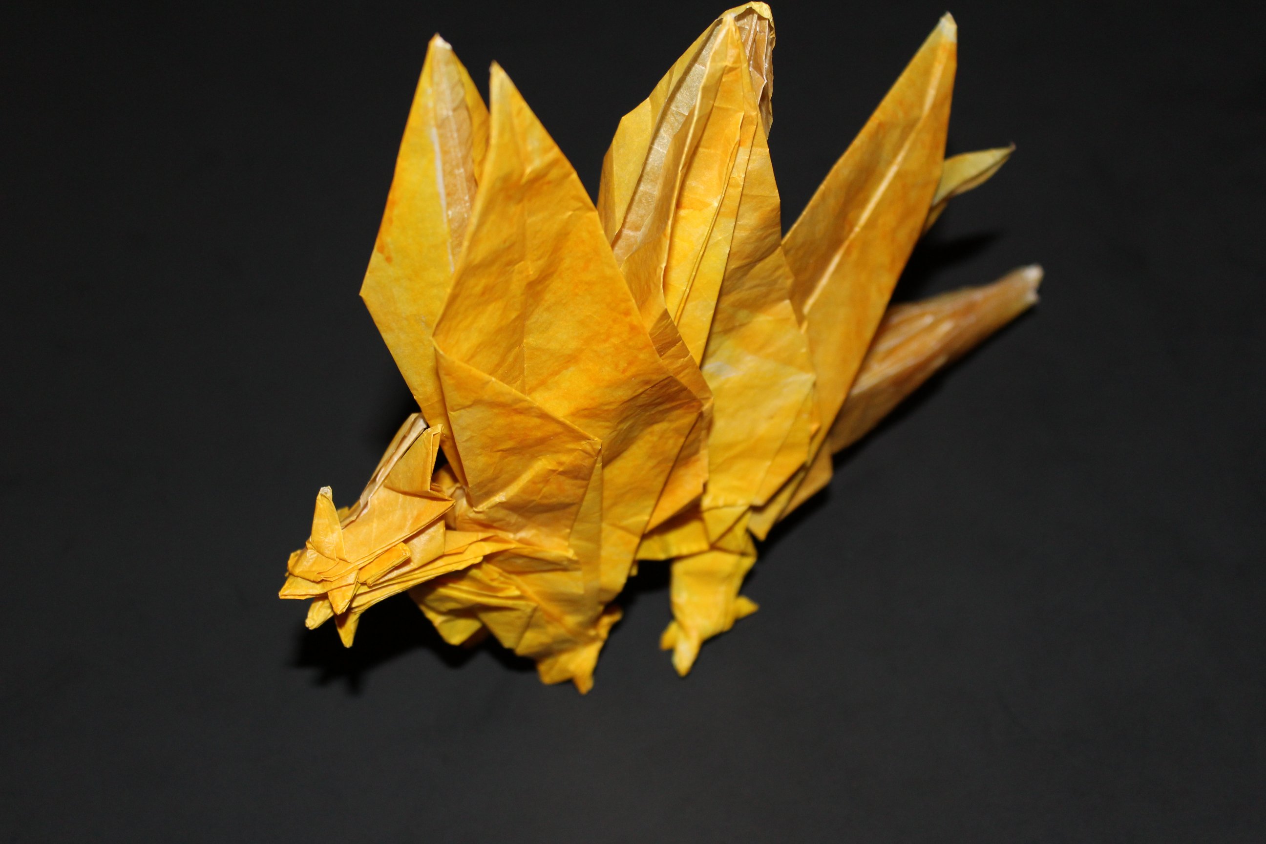 These make his body look more like the wyvern, but that’s only because the legs keep spreading from the center. Most of the features are very different, especially the head, which has eyes and a horn now. In any case, this illustrates the stylistic range you can get out of this crease pattern, and that’s pretty cool.